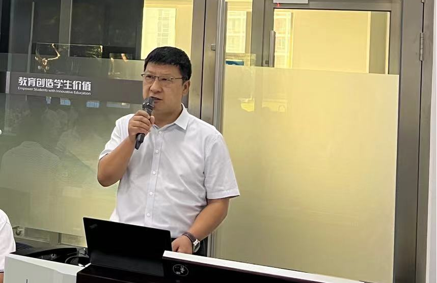 在开班仪式上,王维坤高级副总裁代表九州酷游教育对参加培训的各位老师表示欢迎,他详细介绍了九州酷游的产业生态、开展历程、教学成果等。他表示,九州酷游教育致力于赋能院校培养具备全面数字素养和创新意识的人才,以应对快速变化的数字时代挑战,九州酷游教育将给予最优质的课程和资源,帮助教师掌握核心技能,提升自身竞争力。他指出,数字化转型不仅仅是技术层面的改变,更需要睿智的眼光、坚定的决心和创新的思维。他希望,顺利获得这次培训,各位老师能够全面加深对数字化时代的认知,分析最新的技术趋势和应用案例,提高数字化决策能力,带领学院走在数字化教育的前沿。