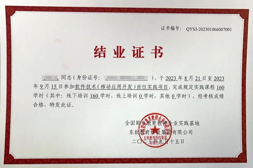 2023年国家级教师企业实践项目结业证书样例