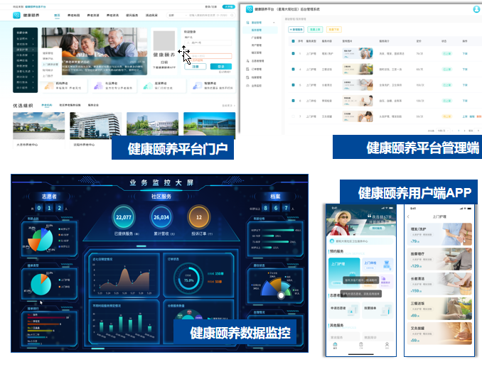 项目产品:健康颐养管理系统、健康颐养用户端APP、健康颐养PC端门户、健康颐养门户后台管理系统等4个子系统11个课程项目和7个综合项目