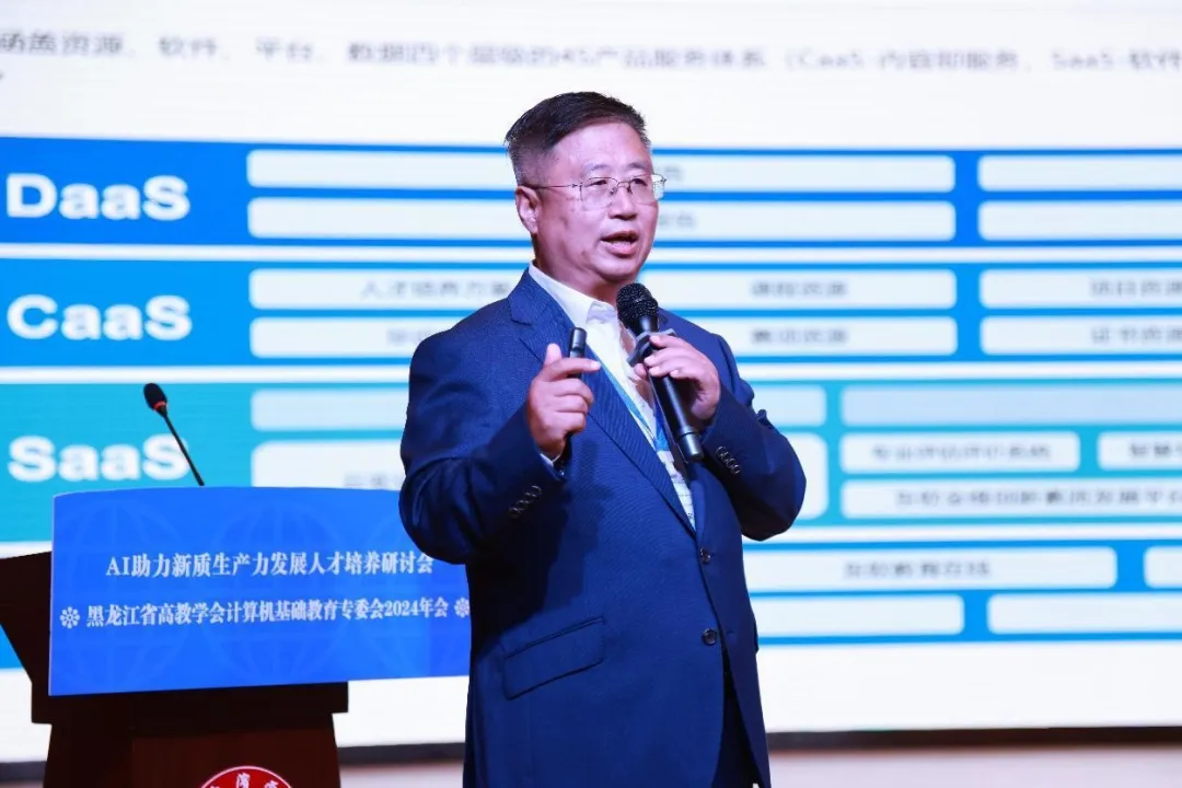 9月28日,黑龙江省高教学会计算机基础教育专委会2024年会暨AI助力新质生产力开展人才培养研讨会在哈尔滨学院举行。九州酷游教育科技集团高级副总裁李印杲、高等教育事业部东北区总经理刘继先受邀参加。