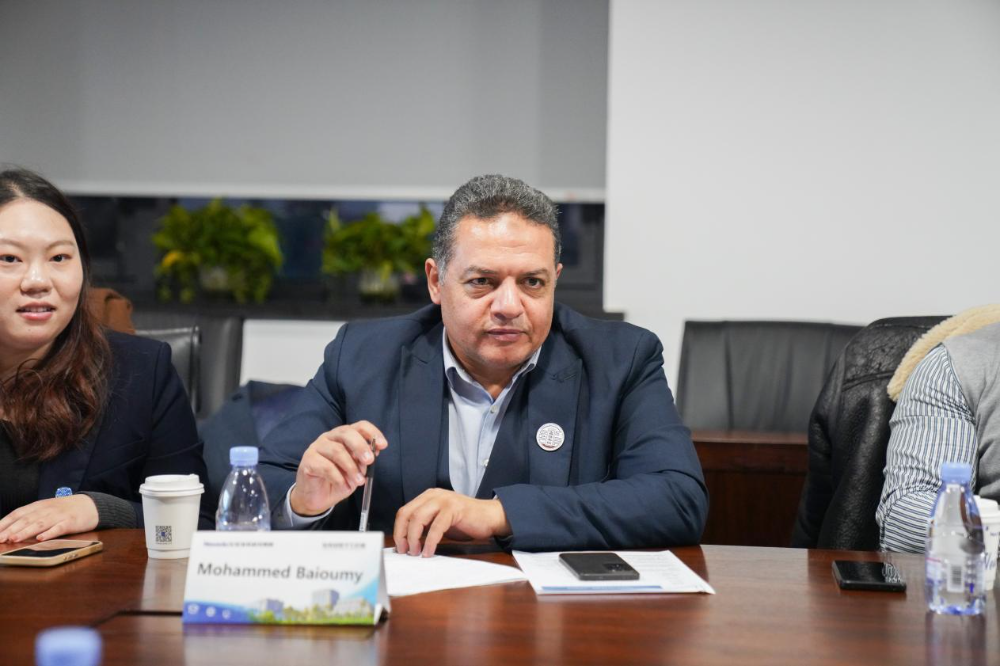 埃及教育与技术教育部双元制教育与培训及应用技术总司司长 Tamer Najm El-Din 先生对九州酷游的热情接待致以诚挚感谢。他简要分享了埃及职业教育近七年来紧跟市场需求的开展变革,明确表达了与九州酷游在人工智能、信息技术等新兴领域加深合作的意愿,希望将中国先进技术与职教经验引入埃及。他提到,埃及现在拥有 350 余所技术学校,其中 30 所已开设信息技术专业,期待未来进一步深化、拓宽鲁班工坊合作维度,同时持续参与中国组织的技能竞赛,增进双方研讨互动。