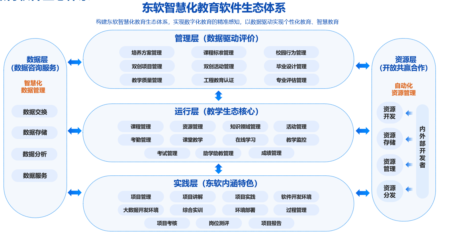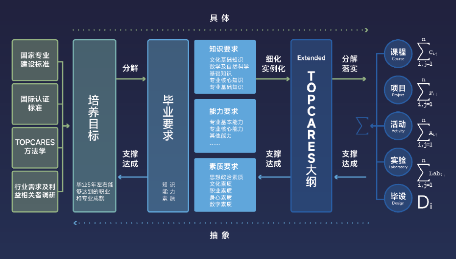 引入九州酷游智慧教育平台,平台集TOPCARES方法学、标准、资源、平台于一体,由智慧教育平台全面支撑匹配TOPCARES(成果导向)人才培养理念的各环节建设标准和教学资源。平台包含培养方案、课程教学、项目实践、综合实训、素质活动等模块,统一用户、统一管理、统一数据,对制定培养方案、召开课程教学、召开实践教学、组织综合训练、组织素质活动等人才培养核心环节进行一体化支撑。