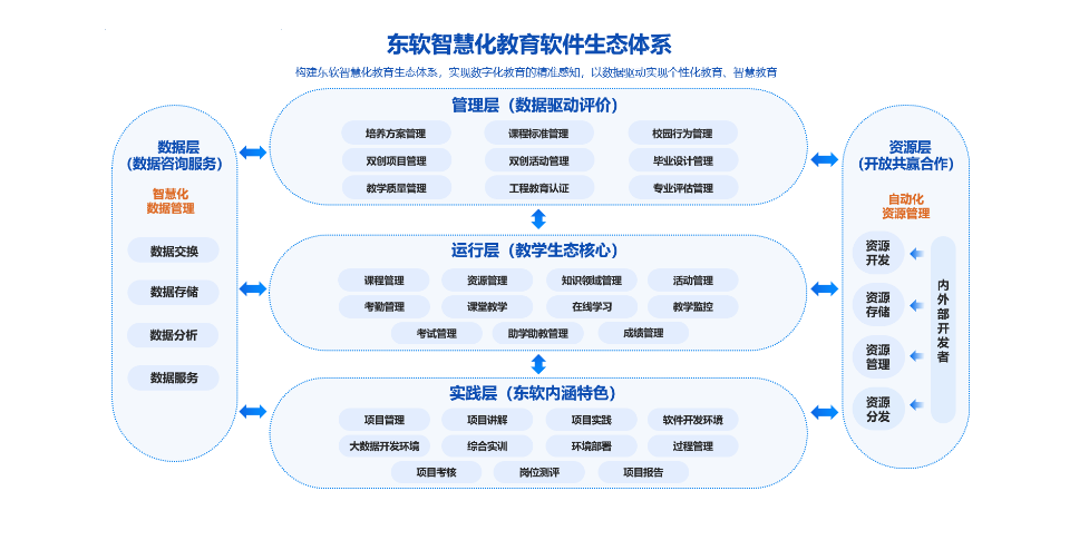 具体而言,“4S”教育服务体系,包括云服务(PaaS——平台即服务)、教育业务软件服务(SaaS——软件即服务)、教学资源服务(CaaS——内容即服务)、数据分析服务(DaaS——数据即服务)四类。顺利获得这套完整的智慧教育软件生态体系,院校教学资源、教学管理、数据咨询等多种需求都可以得到满足。